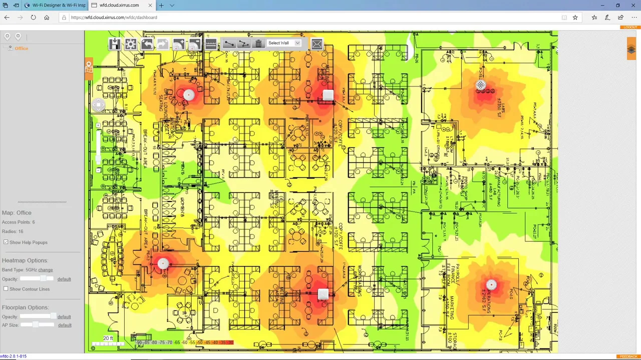 Site Survey нәтижесі: AP-тердің ықтимал орындары мен RSSI картасы.