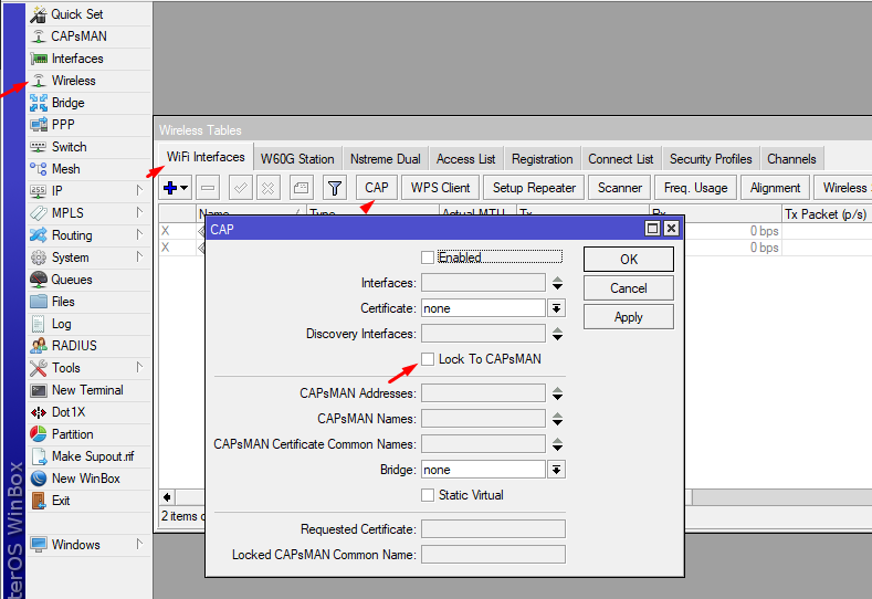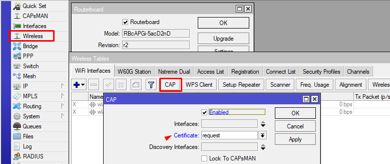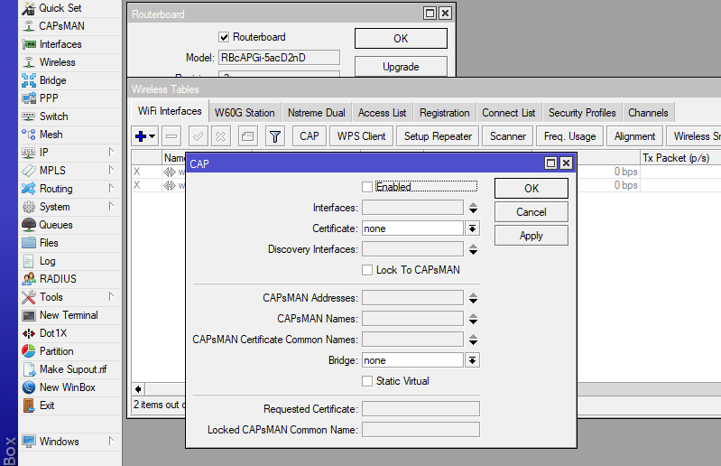 set [ find default-name=wifi2 ] configuration.manager=capsman datapath=capdp disabled=no