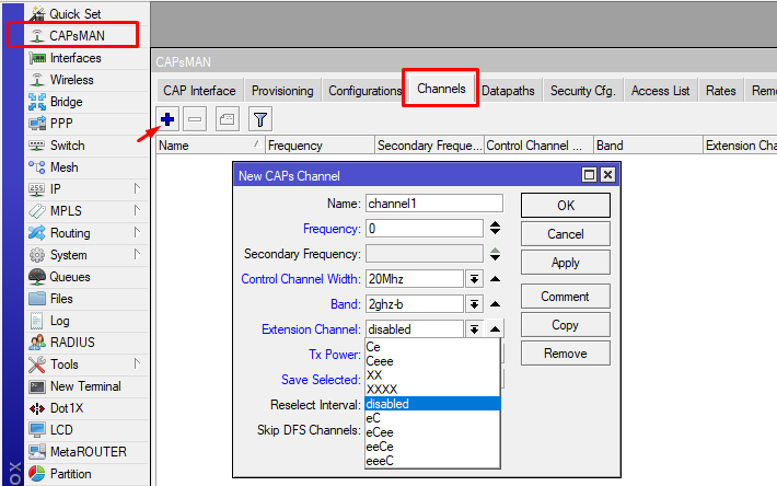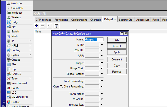 set [ find default-name=wifi1 ] configuration.manager=capsman datapath=capdp disabled=no