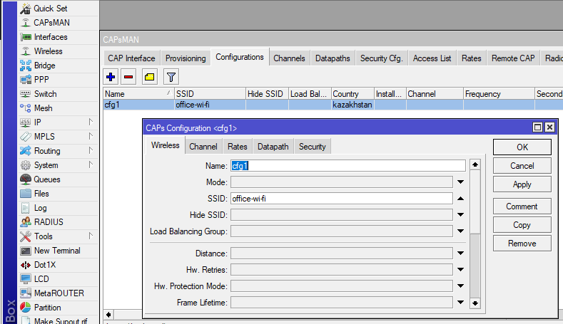 add name=common-conf ssid=MikroTik country=Latvia security=common-auth